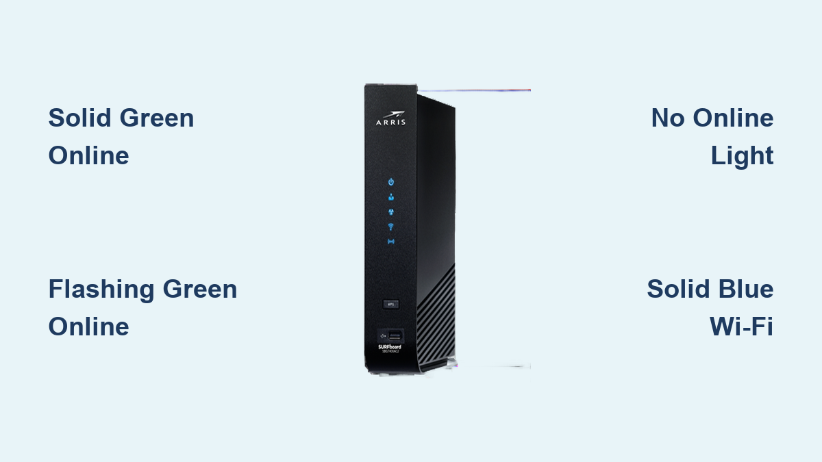 Arris Router Lights Meaning Explained Best Router Advisor, January 23, 2026 That mysterious blinking on your Arris router isn’t random—it’s trying to tell you exactly what’s happening with your internet connection. When your streaming cuts out or your work call drops, those LED indicators provide the first clues to diagnose the problem without making a frustrating call to your ISP. Understanding arris router lights meaning transforms confusing blinks into clear communication, putting you in control of your home network. Most users ignore these visual signals until disaster strikes, but decoding your Arris DG3450’s light patterns helps you distinguish between a simple fix you can handle and a genuine service outage requiring professional help. This guide breaks down precisely what each light status means, when to take action, and how to troubleshoot common issues using only what your router is telling you through its LED indicators. Why Your Arris Online Light Behaves Differently The Online light on your Arris DG3450 serves as your direct communication channel with your Internet Service Provider. This single indicator reveals your entire connection status with the ISP network, making it your most critical diagnostic tool when internet problems occur. Solid Green: Your Internet Connection Is Fully Operational When your Online light glows steady green, celebrate—your modem has successfully completed the handshake protocol with your ISP and established a stable connection. This status confirms all upstream and downstream channels are functioning correctly, providing full internet access throughout your home network. Critical insight: If you see solid green but still experience connectivity issues, the problem likely exists within your local network or connected devices, not with your ISP connection. Check device Wi-Fi settings or try connecting via Ethernet cable to isolate the issue. Flashing Green: Your Modem Is Negotiating With Your ISP That rhythmic green blinking means your Arris router is actively working to establish communication with your Internet Service Provider. This normal transitional state occurs during initial power-up, after service interruptions, or following configuration changes to your modem. Most connections stabilize within 2-5 minutes. If the green light continues flashing beyond this timeframe, your modem cannot complete the necessary handshake with your ISP’s network infrastructure—time to investigate further. No Light: Your Modem Can’t Reach Your ISP A completely dark Online light signals a total breakdown in communication between your Arris router and your Internet Service Provider. This status typically indicates either a service outage affecting your area, physical connection problems with your coaxial cable, or account-related issues with your ISP. Immediate action: First verify your coaxial cable connections at both the wall outlet and modem port before assuming the worst. If connections appear secure but the light remains off, check your ISP’s outage map or contact customer support. Fix Persistent Flashing Green Online Light When your Online light refuses to settle on solid green after the normal initialization period, targeted troubleshooting prevents unnecessary service calls and gets you back online faster. Check Coaxial Cable Connections Thoroughly Loose or damaged coaxial cables cause the majority of persistent flashing green issues on Arris routers. Carefully inspect both ends of the cable for secure connections—you should hear a distinct click when properly seated. Examine the entire cable length for kinks, crushing, or rodent damage that might interfere with signal transmission. Pro tip: Gently wiggle the cable at connection points while observing the Online light. If the light behavior changes during this test, you’ve identified a faulty connection requiring replacement. Perform Proper Power Cycling Sequence Many connectivity issues resolve with a complete modem restart following this precise procedure: 1. Unplug the power cable directly from the electrical outlet 2. Wait a full 30 seconds to ensure complete capacitor discharge 3. Reconnect power and observe the entire startup sequence 4. Allow 3-5 minutes for the modem to fully reestablish connection Skipping the 30-second wait period prevents residual power from interfering with the reset process—this critical step makes the difference between temporary relief and permanent resolution. What Your Arris Wi-Fi Light Reveals About Network Activity The Wi-Fi light on your Arris DG3450 provides dual diagnostic information, simultaneously indicating both wireless network status and real-time data transmission activity—essential for distinguishing between Wi-Fi problems and actual internet outages. Solid Blue: Wireless Network Available But Idle That steady blue glow confirms your wireless radios are active and broadcasting your network name (SSID), allowing devices to detect and connect to your Wi-Fi. However, this state specifically indicates no active data transfer is currently occurring between connected devices and the internet. Common misconception: Many users mistake solid blue for a problem when it’s actually your normal “standby” state. Your network is fully operational but simply not being utilized at that exact moment. Flashing Blue: Active Data Transfer In Progress The moment your Wi-Fi light begins blinking blue, you know connected devices are actively transmitting data across your network. The blinking pattern corresponds directly to data flow—more intense activity creates faster flashing during streaming, large downloads, or video conferencing. Diagnostic value: Random blinking when no devices should be active might indicate background updates or potential unauthorized network access. Check your connected devices list in the router admin panel if concerned. Diagnose Wi-Fi Connection Problems Using Light Patterns Understanding the interplay between your Onl
