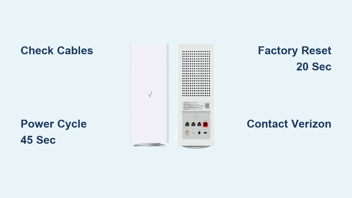 Verizon pushes firmware updates quarterly. Check for updates manually at verizon.com/support/router-updates on the 1st of March, June, September, and December. Outdated firmware increasingly conflicts with evolving network protocols, triggering abnormal status indicators like blue flashing as security systems malfunction.