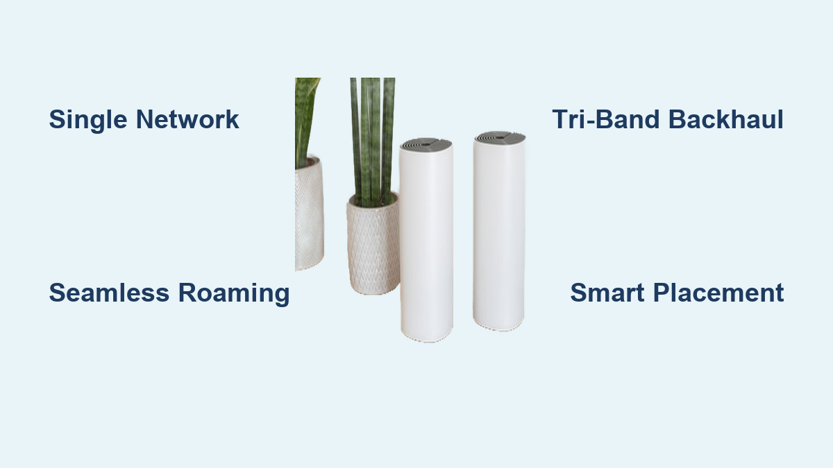 Dual-band systems (2.4GHz + 5GHz) force the 5GHz radio to handle both your devices and node-to-node traffic. During heavy use (like 4K streaming), this causes congestion that throttles speeds. Tri-band systems solve this with a dedicated 5GHz or 6GHz radio exclusively for backhaul, preserving full client bandwidth. Think of it like adding a private express lane to a busy highway.