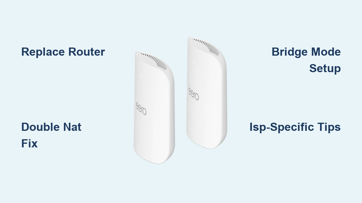 • Replace Router: Best for most users (eliminates double NAT). eero becomes your main router.