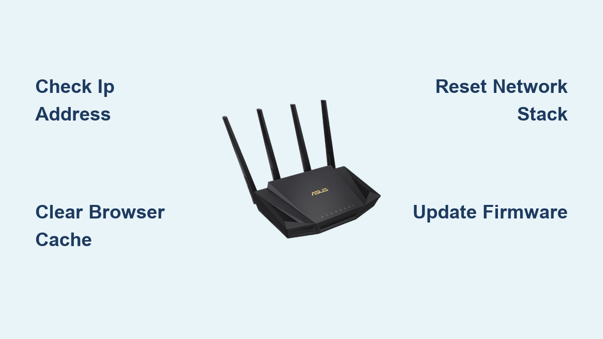 How to Fix ASUS Router Not Working Best Router Advisor, January 25, 2026 Your ASUS router suddenly stops responding, web pages won’t load, and that familiar admin login screen won’t appear no matter how many times you refresh. When your ASUS router not working scenario strikes during a critical video call or while streaming, panic sets in—but 90% of these issues resolve with systematic troubleshooting. Most failures stem from three culprits: incorrect IP access, browser conflicts, or firmware glitches. This guide delivers battle-tested fixes used by network technicians to revive unresponsive ASUS routers in under 30 minutes. Stop wasting time rebooting endlessly. You’ll learn exactly how to verify your router’s true IP address, bypass browser security blocks safely, and recover from corrupted firmware—even when the admin page won’t load. By the end, you’ll have a personalized diagnostic roadmap to fix your specific ASUS router not working emergency. Locate Your Exact ASUS Router IP Address Check Physical Router Label for Default Gateway Flip your ASUS router and examine the white sticker on the bottom. Look for “Default Gateway,” “Router IP,” or “Management IP”—this is your access point. Most modern RT-AX and RT-AC series models use 192.168.1.1, while older RT-N series often default to 192.168.0.1. Never assume the IP; your ISP or previous owner may have changed it. If the sticker is damaged, consult your model-specific manual online. Verify Current IP via Command Prompt or Terminal Windows users: Press Windows + R, type cmd, then enter ipconfig. Locate “Default Gateway” under your active connection—it’s your router’s live IP. Mac users: Open Terminal and run ifconfig | grep "inet ". Your gateway appears beside “inet” in your active interface (usually en0). Pro tip: If you see a 169.254.x.x address, your device isn’t receiving an IP from the router—indicating a deeper connectivity failure requiring cable checks. Confirm Physical and Network Connectivity Test Wi-Fi and Ethernet Connections Connect your phone or laptop directly to your ASUS router’s SSID—not a neighbor’s network or guest Wi-Fi. Critical mistake: Many users troubleshoot the wrong network. For wired tests, use a Cat-5e or Cat-6 cable between your computer and any LAN port (ports 1-4). Both the router’s LAN LED and your computer’s network light must glow solid green or amber. If lights are dead, swap cables immediately. Validate IP Configuration Settings On Windows: Go to Control Panel > Network & Sharing Center > Change adapter settings. Right-click your connection > Status > Details. Verify: – DHCP Enabled: Yes – IPv4 Address: Starts with 192.168.1. or 192.168.0. – Default Gateway: Matches your router’s IP Mac users: Check System Settings > Network > Advanced > TCP/IP. Ensure “Configure IPv4” shows “Using DHCP.” If settings are incorrect, click “Renew DHCP Lease.” Eliminate Browser Access Blocks in 60 Seconds Bypass Cache and Extension Conflicts Clear browser cache immediately: In Chrome, type chrome://settings/clearBrowserData, select “All time,” and clear cookies/cached files. Crucial step: Test in Incognito mode first—this disables extensions causing 70% of router access failures. If Chrome fails, try Firefox or Edge. Ad-blockers and HTTPS scanners commonly block local router pages. Reset Network Stack for Instant Results Windows: Open Command Prompt as admin and run: ipconfig /flushdns ipconfig /release ipconfig /renew Mac: In Terminal, enter: sudo dscacheutil -flushcache; sudo killall -HUP mDNSResponder Why this works: These commands clear corrupted DNS entries and force your device to request a fresh IP from the router—resolving most “router asus not working” symptoms within 30 seconds. Resolve “Connection Not Private” Browser Warnings Safely Bypass SSL Certificate Errors ASUS routers use self-signed certificates for HTTPS access, triggering browser security warnings. Do not bypass on public networks—but for home use, click “Advanced” then “Proceed to [IP address] (unsafe)” in Chrome. Firefox users select “Accept the Risk and Continue.” Long-term fix: Type http://192.168.1.1 instead of HTTPS. Once logged in, go to Administration > System > Web Access Protocol and select “HTTP Only” for local management. Clear Stale Certificates Causing Persistent Errors In Chrome, go to chrome://settings/security > Manage Certificates > Advanced > Clear SSL State. Firefox users navigate to Settings > Privacy & Security > View Certificates > Your Certificates and delete any router-related entries. This removes corrupted certificates blocking access after firmware updates. Update or Recover Corrupted Firmware Perform Safe Web-Based Firmware Updates Download the exact firmware for your model and hardware revision (e.g., RT-AX86U vs RT-AX86U_V2) from ASUS Support. Connect via Ethernet, log into http://192.168.1.1, and go to Administration > Firmware Update. Upload the file and never interrupt power during the 3-5 minute process. Wait for the automatic reboot confirmation before proceeding. Rescue Unbootable Routers with Firmware Restoration When the admin page won’t load: 1. Rename firmware file to model_name.trx (e.g., RT-AX86U.trx) 2. Hold reset button while powering on 3. Release when power LED blinks slowly 4. Access http://192.168.1.1 and use ASUS Firmware Restoration tool Critical: Use a wired connection and OEM power adapter—voltage fluctuations corrupt firmware during updates. Execute Strategic Factory Reset Perform Physical Reset Correctly Power on the router, then press and hold the recessed reset button for 10-15 seconds (not 5 seconds). Release when the power LED blinks rapidly. Wait 2-3 minutes for full reboot—do not unplug during this phase. Post-reset, default credentials are admin/admin (check your model’s label). Reconfigure Essential Settings Efficiently After reset, prioritize: 1. Change default admin 